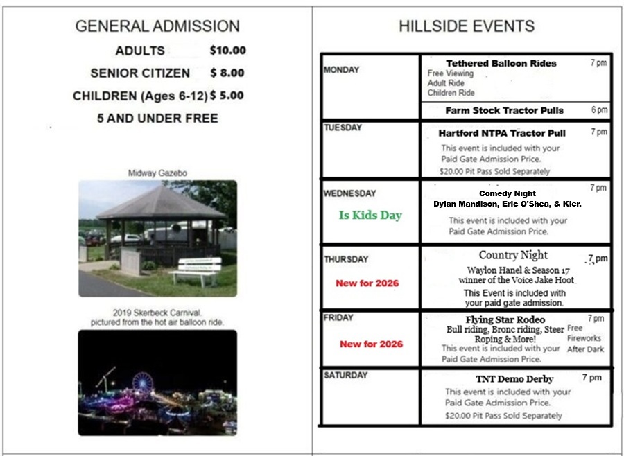 Carnival Rides will begin on Tuesday July 21th 2026 at 3pm